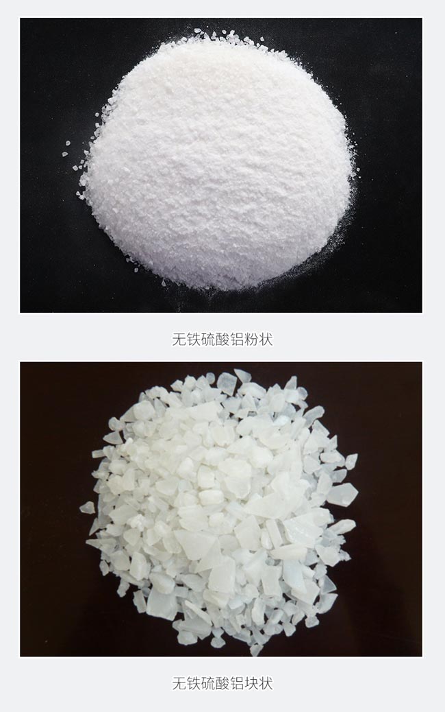 造紙工業(yè)中作為松香膠、蠟乳液等膠料的沉淀劑,水處理中作絮凝劑,還可作泡沫滅火器的內(nèi)留劑,制造明礬、鋁白的原料,石油脫色、脫臭劑、某些藥物的原料等。還可制造人造寶石及高級(jí)銨明礬。砷含量不大于5mg/kg的產(chǎn)品可用于水處理絮凝劑。 [9]